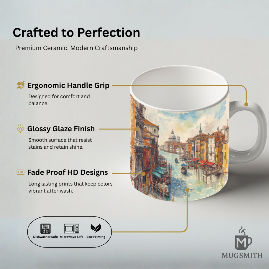 Crafted with precision and purpose, every MugSmith ceramic mug combines modern design with timeless craftsmanship. Made from premium-grade ceramic and finished with a glossy glaze, it resists stains and maintains its shine even after countless washes. Designed with an ergonomic handle for a comfortable grip and fade-proof HD prints that stay vibrant through daily use, each MugSmith mug is made to elevate your coffee moments — from quiet mornings to creative midnights. Dishwasher and microwave safe, eco-printed with love, and made for those who believe that everyday rituals deserve art.